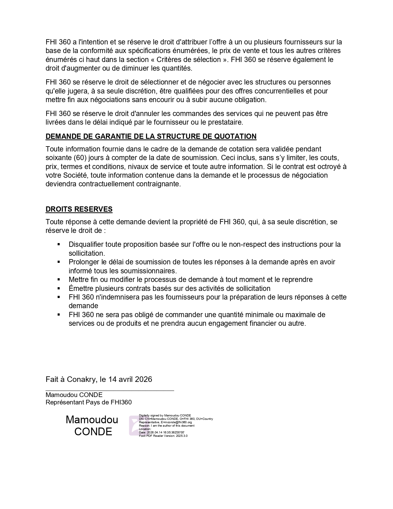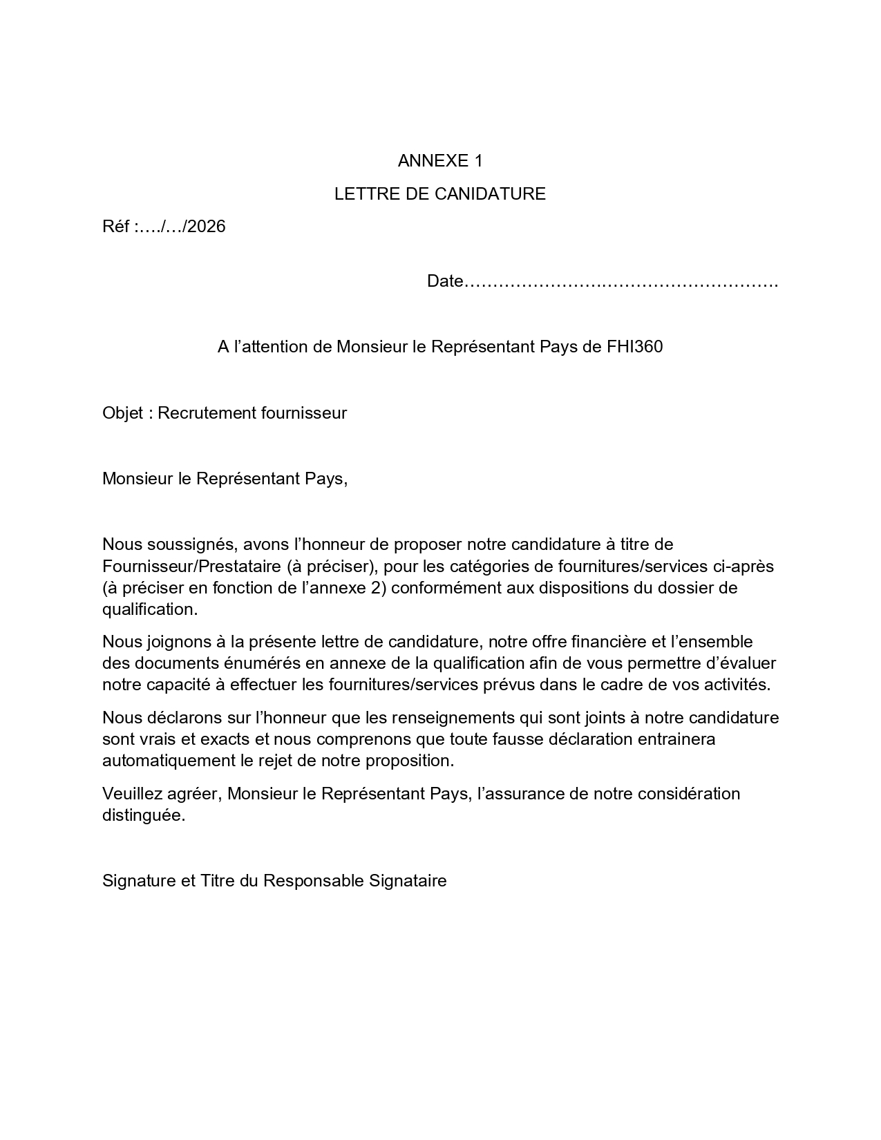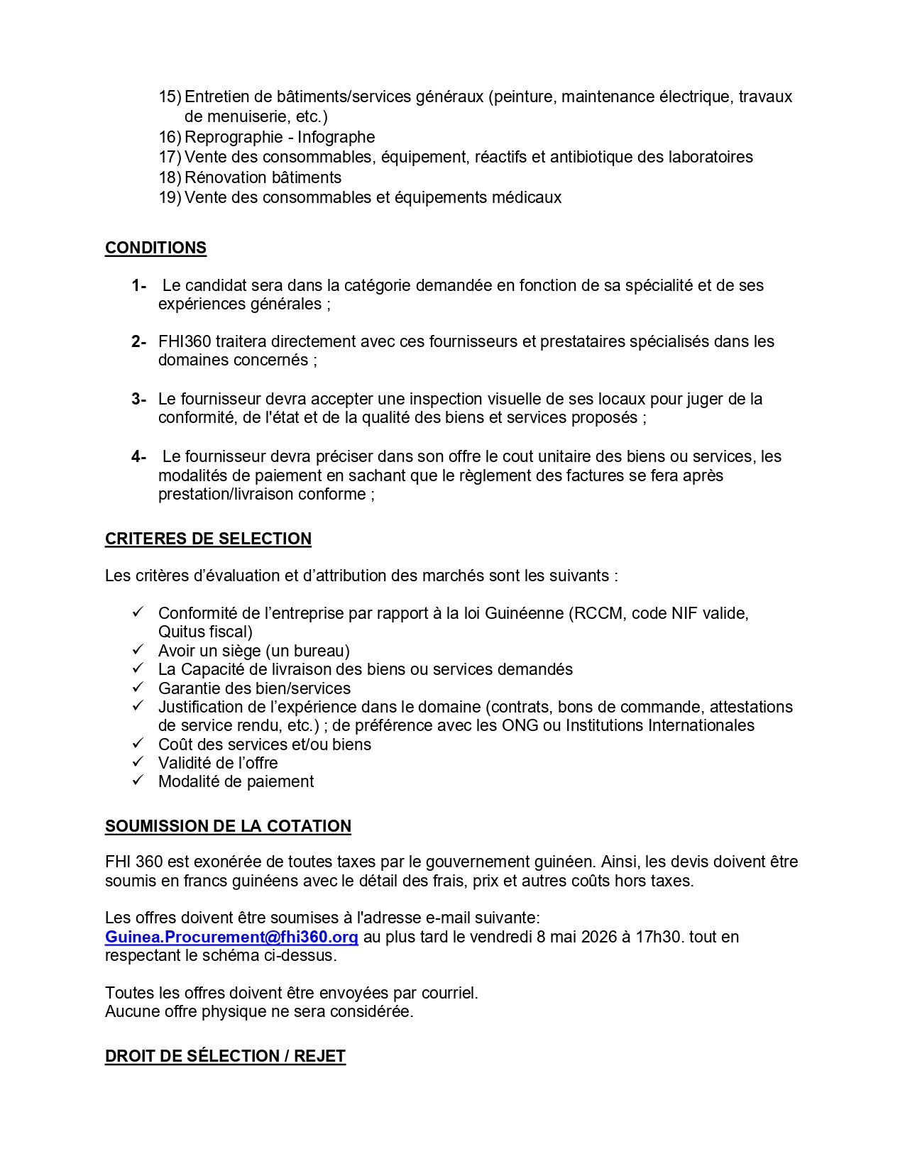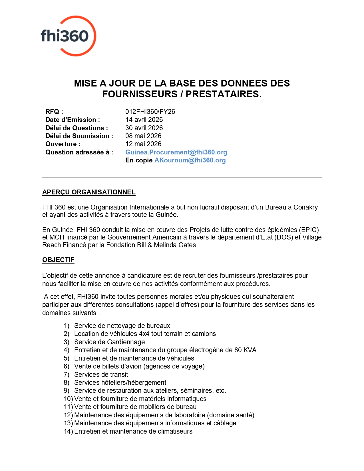 Fhi360 – RFQ pour la mise à jour de la base de données des Fournisseurs / Prestataires