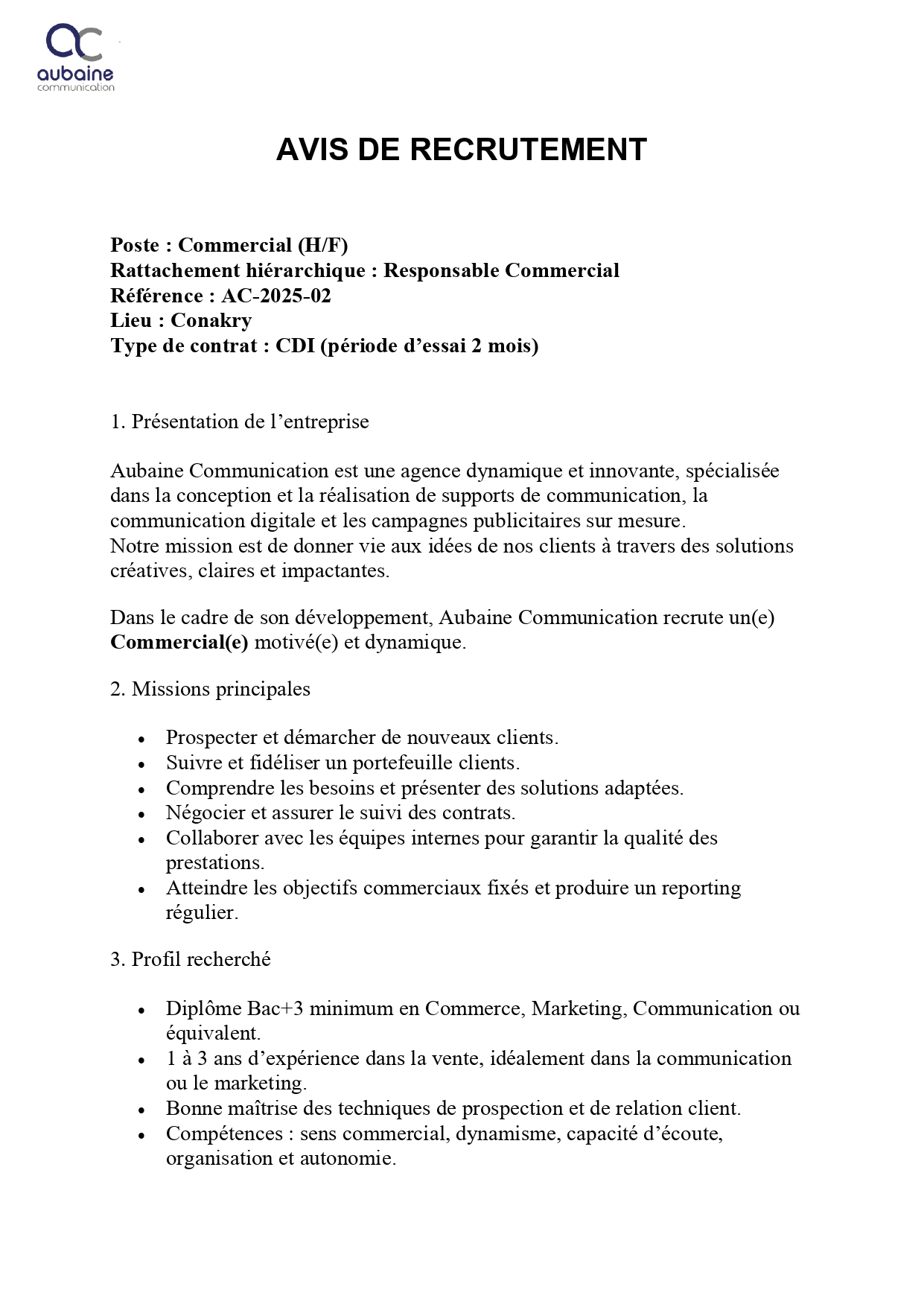 Offres d'emplois Aubaine Communication – Avis de recrutement d’un Commercial (H/F) Partager FacebookLinkedinWhatsAppTwitter Publié par Journal 224business 1 septembre 2025 0 224business - Advertisement - - Advertisement - - Advertisement - Plus d'offres Santé Intégrée – Avis de recrutement d’un(e) Spécialiste Communication pour le Changement de Comportement Social Journal 224business - 23 janvier 2026 Sante Integree – Avis d’appel d’offre pour le recrutement d’un Consultant Expert en décentralisation et Financement de la Santé Journal 224business - 23 janvier 2026 CRS – Avis de recrutement d’un spécialiste Laboratoire Journal 224business - 19 janvier 2026 Voir plus