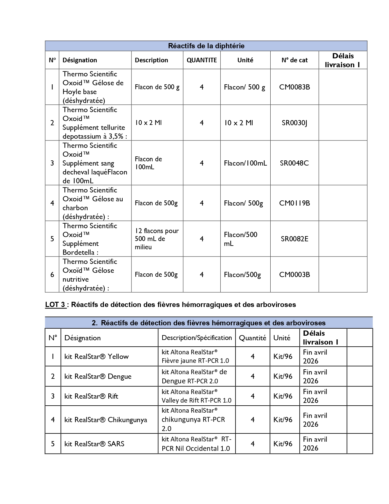 FHI 360 – Appels d’offres pour la sélection d’un Fournisseur pour la livraison des réactifs, équipements et consommables de laboratoire.