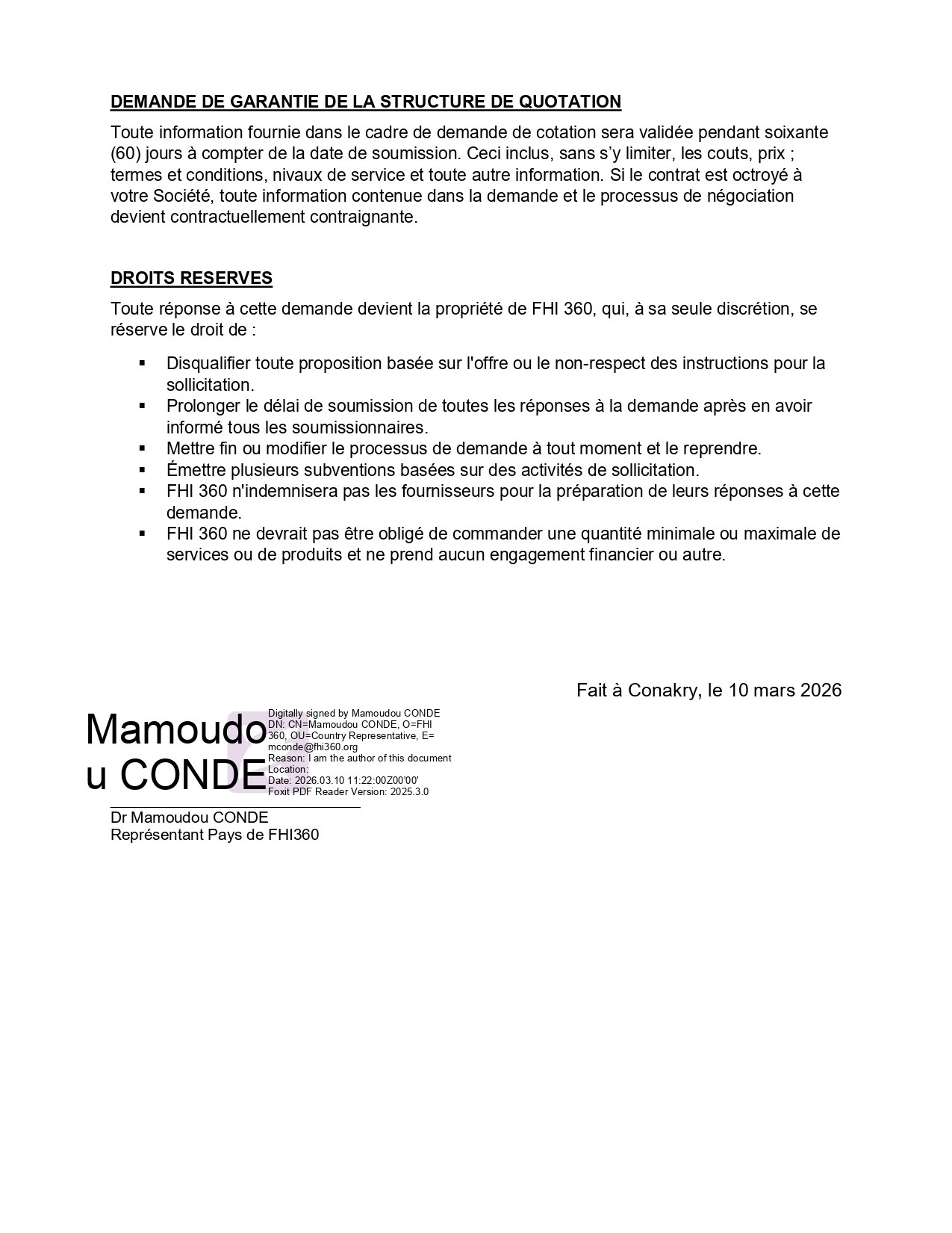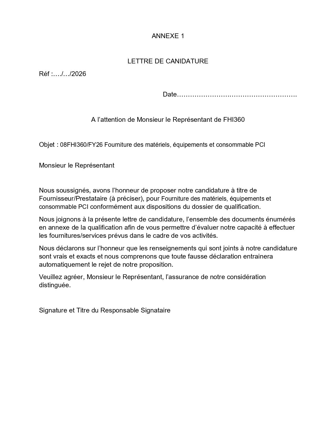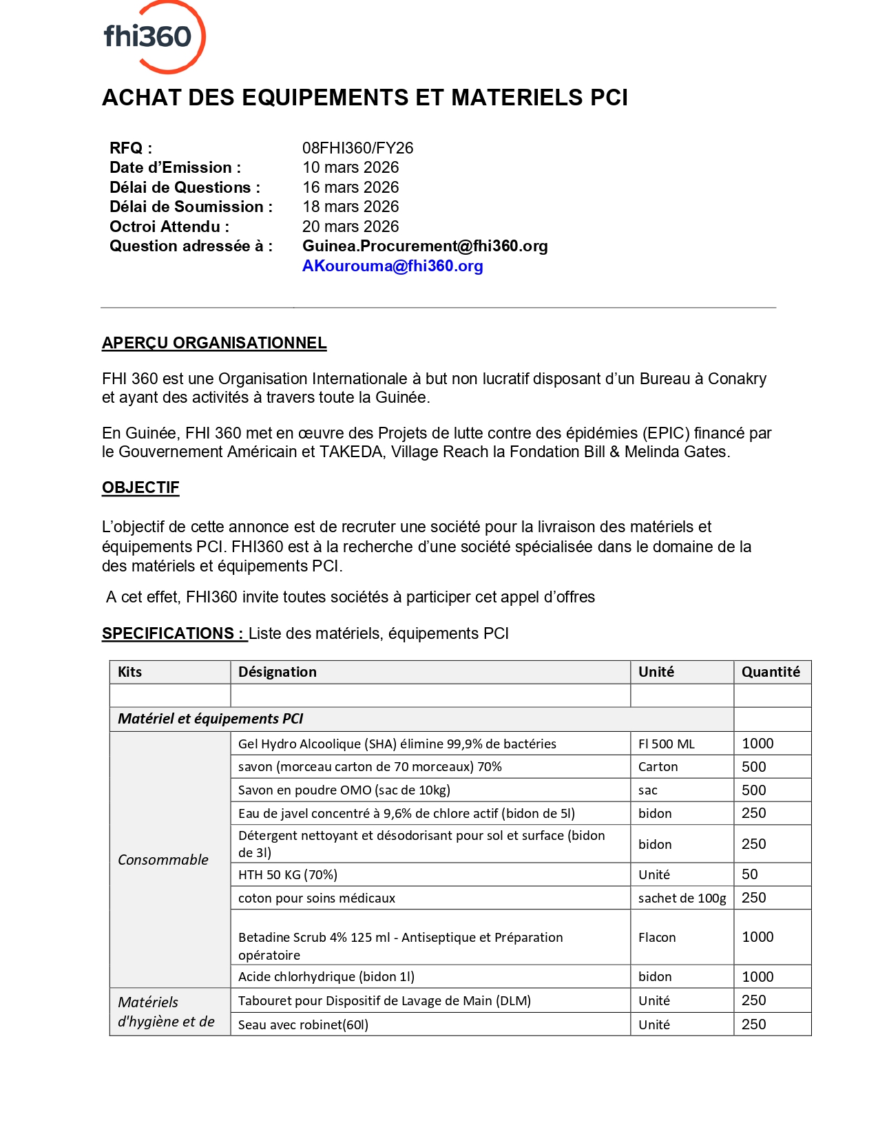 Fhi360 – Appel d’offres pour l’Achat des Equipements et Materiels PCI