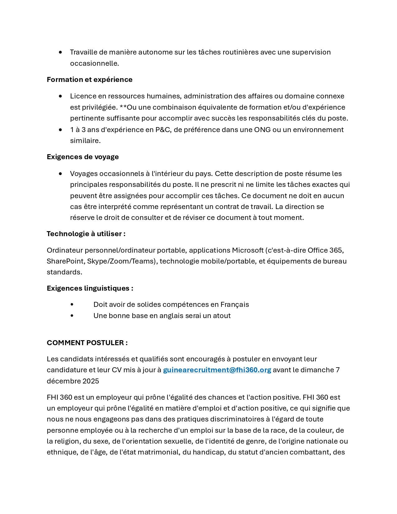 fhi360 – Avis de recrutement d’un Associé Personnes et Culture (RH officier)