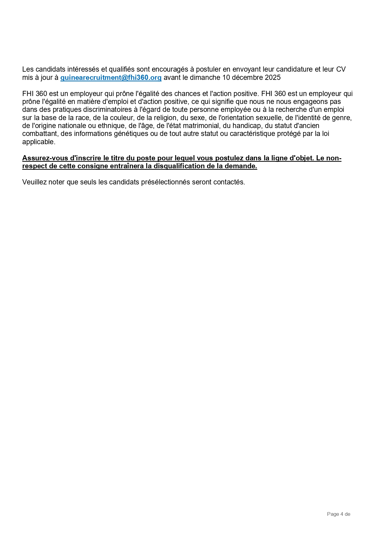 Offres d'emplois fhi360 – Avis de recrutement du poste de spécialiste surveillance Partager FacebookLinkedinWhatsAppTwitter Publié par Journal 224business 4 décembre 2025 0 224business - Advertisement - - Advertisement - - Advertisement - Plus d'offres RECOSAC GUINEE – Avis de recrutement de Comptable Journal 224business - 5 février 2026 Santé Intégrée – Avis de recrutement d’un(e) Chauffeur Journal 224business - 5 février 2026 SAFIMARINE-SARLU – Avis de recrutement|Marins ordinaires (stagiaires en formation) Journal 224business - 2 février 2026 Entreprise recruteuse : SAFIMARINE-SARLU (Société de services intégrés) Lieu de travail/formation : Territoire de la Guinée (recrutement local) →Organisme de formation maritime à l’étranger (formation... Voir plus