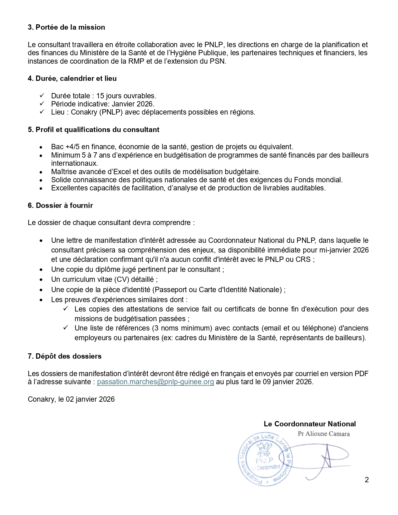 Appels d'offres PNLP – Recrutement d’un consultant national Budget pour appuyer l’extension du PSN 2027-2029 Partager FacebookLinkedinWhatsAppTwitter Publié par Journal 224business 2 janvier 2026 0 224business - Advertisement - - Advertisement - - Advertisement - Plus d'offres Santé Intégrée – Avis de recrutement d’un(e) Spécialiste Communication pour le Changement de Comportement Social Journal 224business - 23 janvier 2026 Sante Integree – Avis d’appel d’offre pour le recrutement d’un Consultant Expert en décentralisation et Financement de la Santé Journal 224business - 23 janvier 2026 CRS – Avis de recrutement d’un spécialiste Laboratoire Journal 224business - 19 janvier 2026 Voir plus