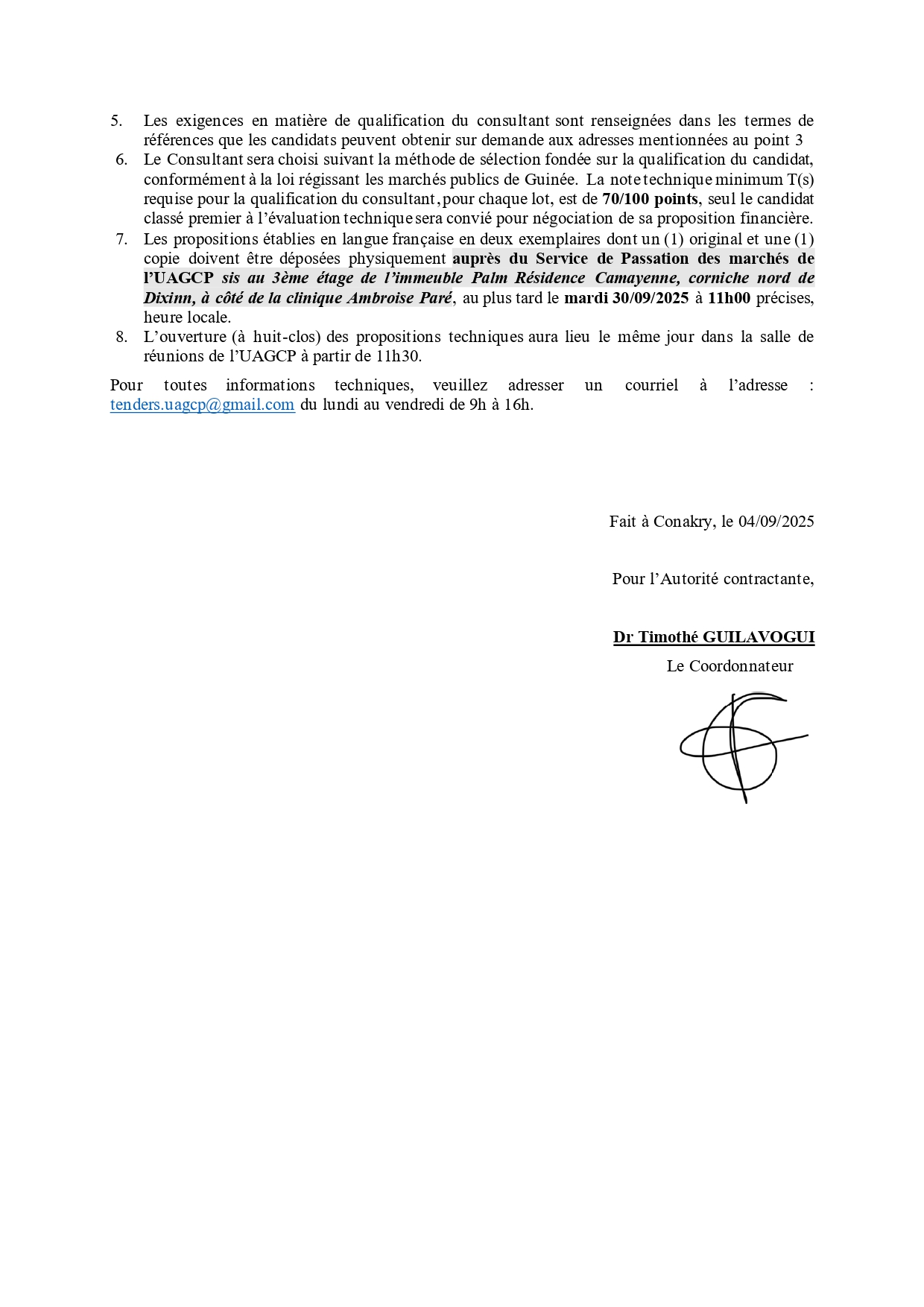 UAGCP – AMI pour la selection de deux consultants individuels pour l’élaboration des procédures de Gestion Logistique de l’ANSS (LOT1) La Formation de 10 Cadres des Laboratoires centraux en BIO-INFORMATIQUE à Conakry (LOT2)